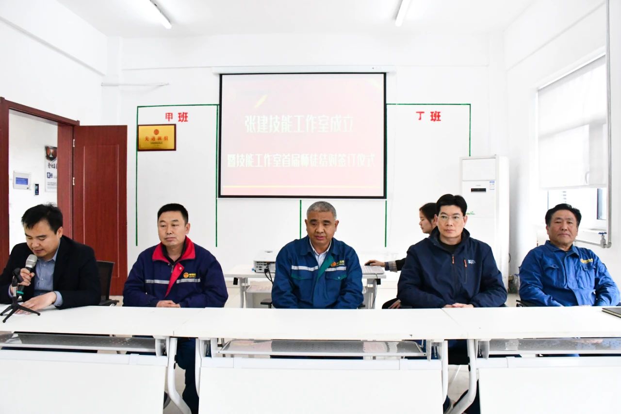 张建,,,,,,,其在装备维修等专业方面,,,,,,,手艺精湛过硬,,,,,,,多次解决手艺难题,,,,,,,令同事们钦佩。。。。。于是,,,,,,,公司以他的名字命名设立了“张建手艺事情室”,,,,,,,以此建设“师带徒”人才作育新模式,,,,,,,开发塑造人才新途径。。。。。克日,,,,,,,“张建手艺事情室建设暨手艺事情室首届师徒结对签署仪式”在厂区111聚会室举行。。。。。同时,,,,,,,“张建手艺事情室”揭牌。。。。。