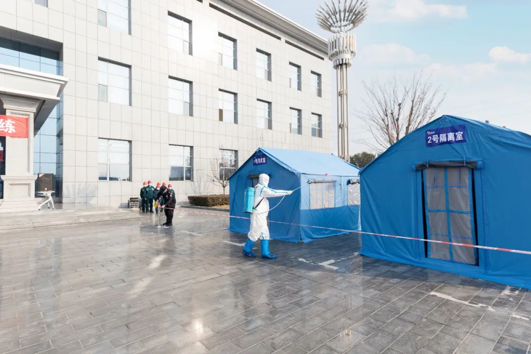 此次演练模拟情景定为,,,,,一名曾途经中高危害地区的员工入厂门检时体温偏高,,,,,公司连忙启动疫情防控应急预案,,,,,安保组、医务组、消杀组等疫情防控职员迅速到岗到位,,,,,有条不紊地举行疫情防控处置惩罚,,,,,实时化解险情。。。。。