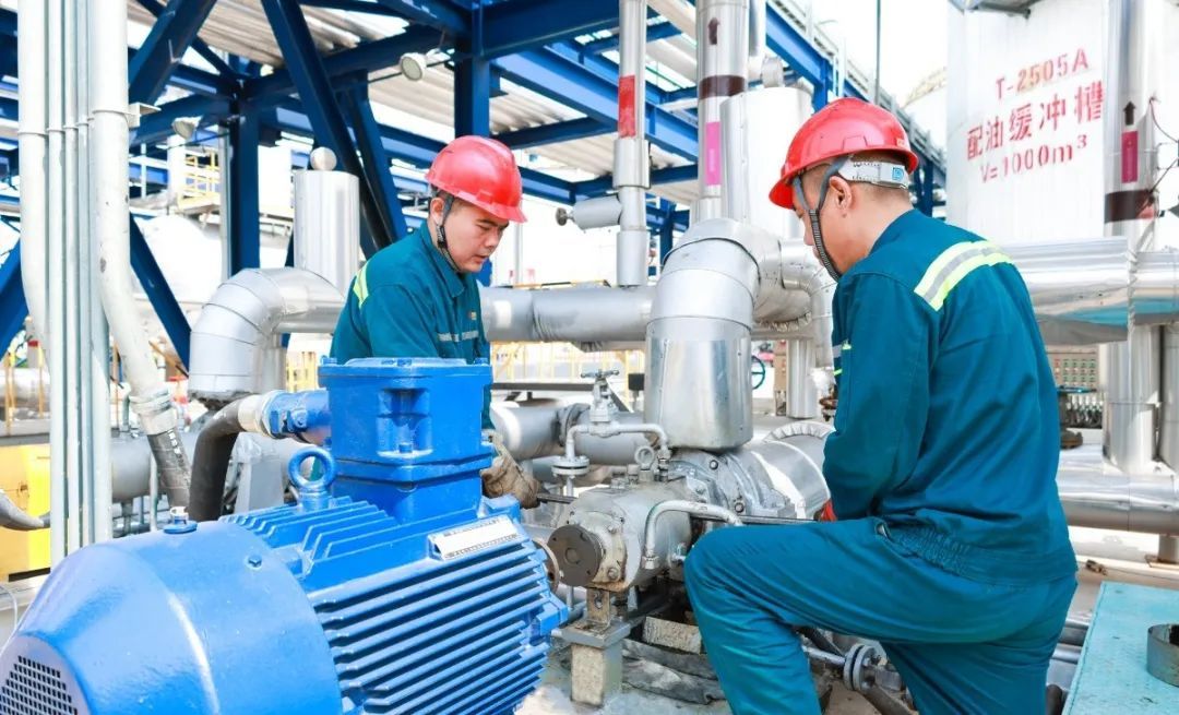 苯加氢E514F1空凉风机运行历程中发出轴承异响,,,,,,,为确保装备的稳固与清静运行,,,,,,,电气手艺职员迅速对装备举行紧迫磨练,,,,,,,将空凉风机支架、扇叶和附件举行拆除替换。。。。。。。只管现场气温较高,,,,,,,汗珠一直从手艺职员脸上滑落,,,,,,,但丝毫没有影响装备磨练进度。。。。。。。经由主要而有序的磨练事情,,,,,,,电气职员乐成完成了轴承的替换,,,,,,,并通过严酷的测试,,,,,,,确保装备运行恢复正常。。。。。。。