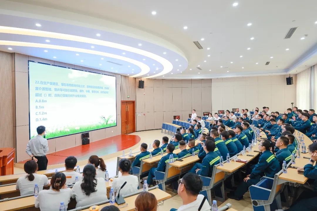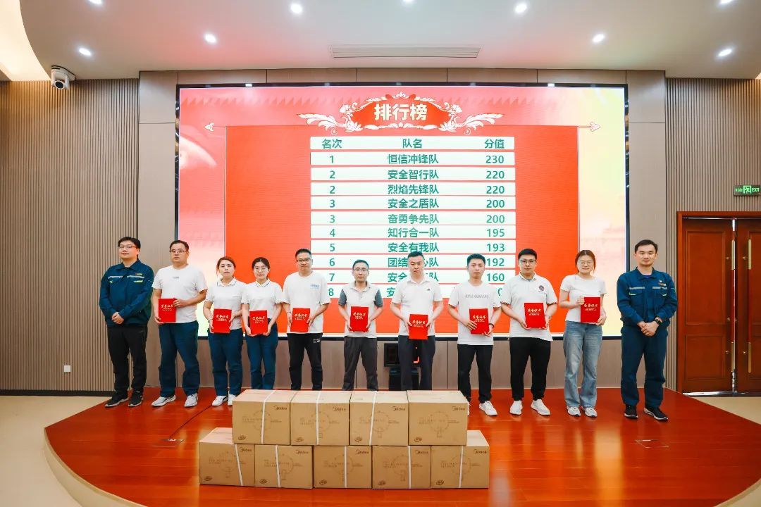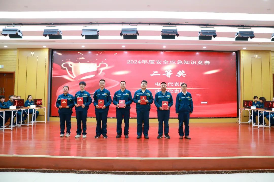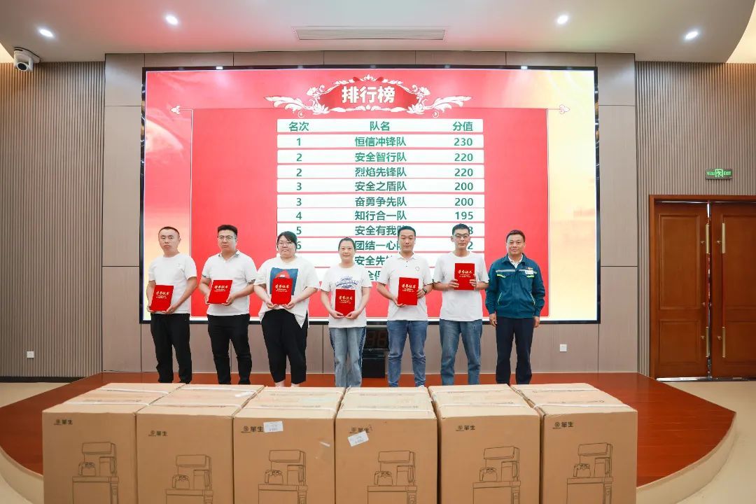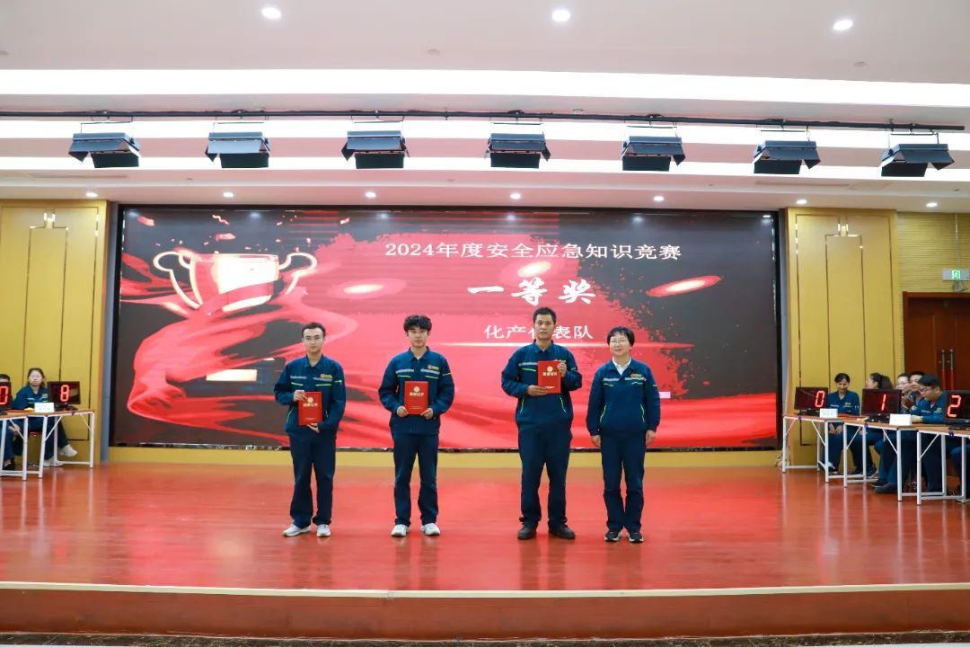 来自各生产岗位的八支代表队加入角逐。。。。。。此次竞赛分为小我私家必答题、团队抢答题、危害题三类。。。。。。周全磨练了参赛队员对清静生产和应急治理的明确与应用能力。。。。。。经由主要而精彩的比拼,,,,,,,,最终决出一等奖1名,,,,,,,,二等奖2名,,,,,,,,三等奖3名。。。。。。