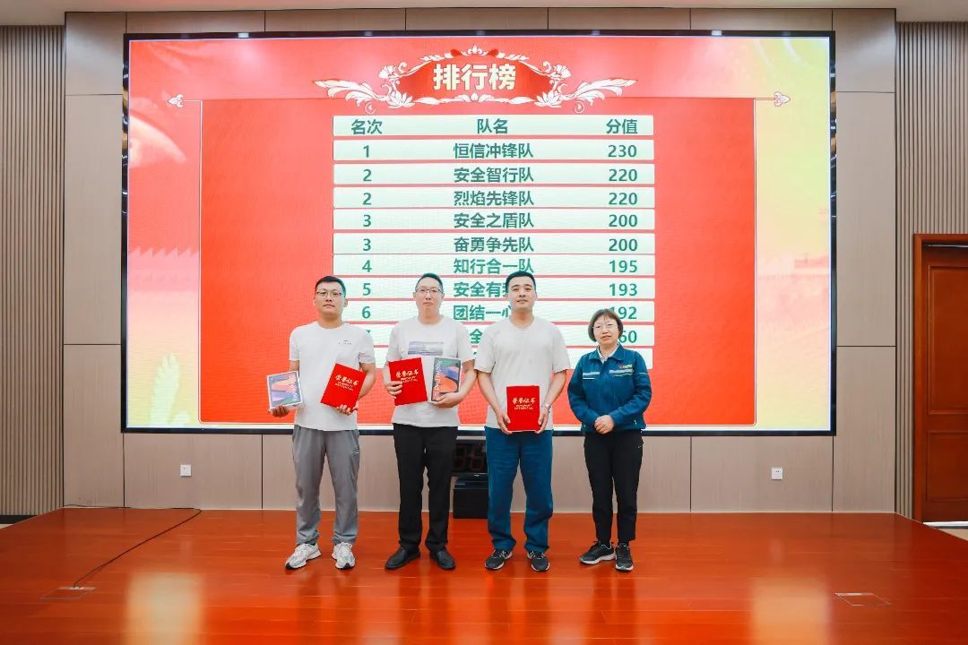竞赛竣事后,,,,,,,,公司向导、各部分认真人与参赛队员合影留念,,,,,,,,配合见证了恒信高科2024年清静应急知识竞赛的圆满落幕。。。。。。